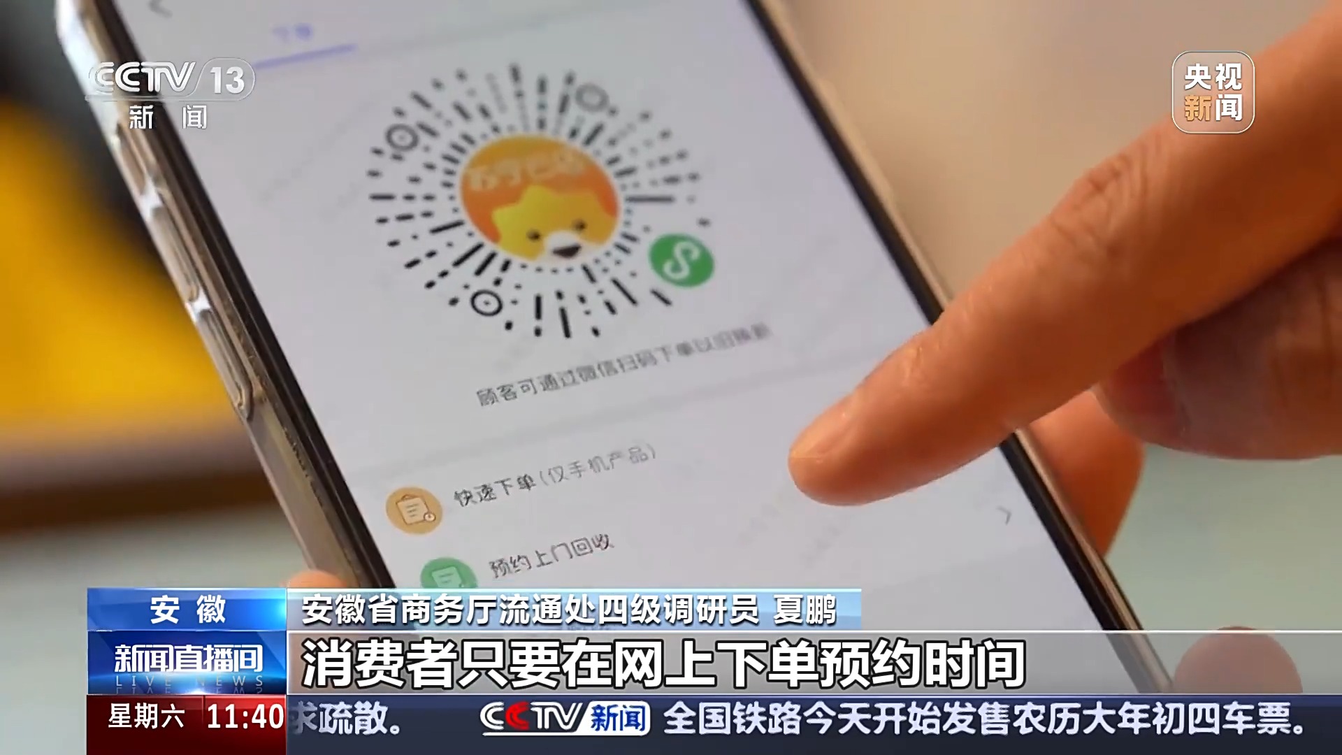 安徽省商务厅流通处四级调研员夏鹏:比如我们要求参与商户都要能够提供家电送新、收旧、拆装一站式上门服务能力,消费者只要在网上下单预约时间,服务人员就会按时上门提供服务,相关的服务能力基本覆盖全省。
