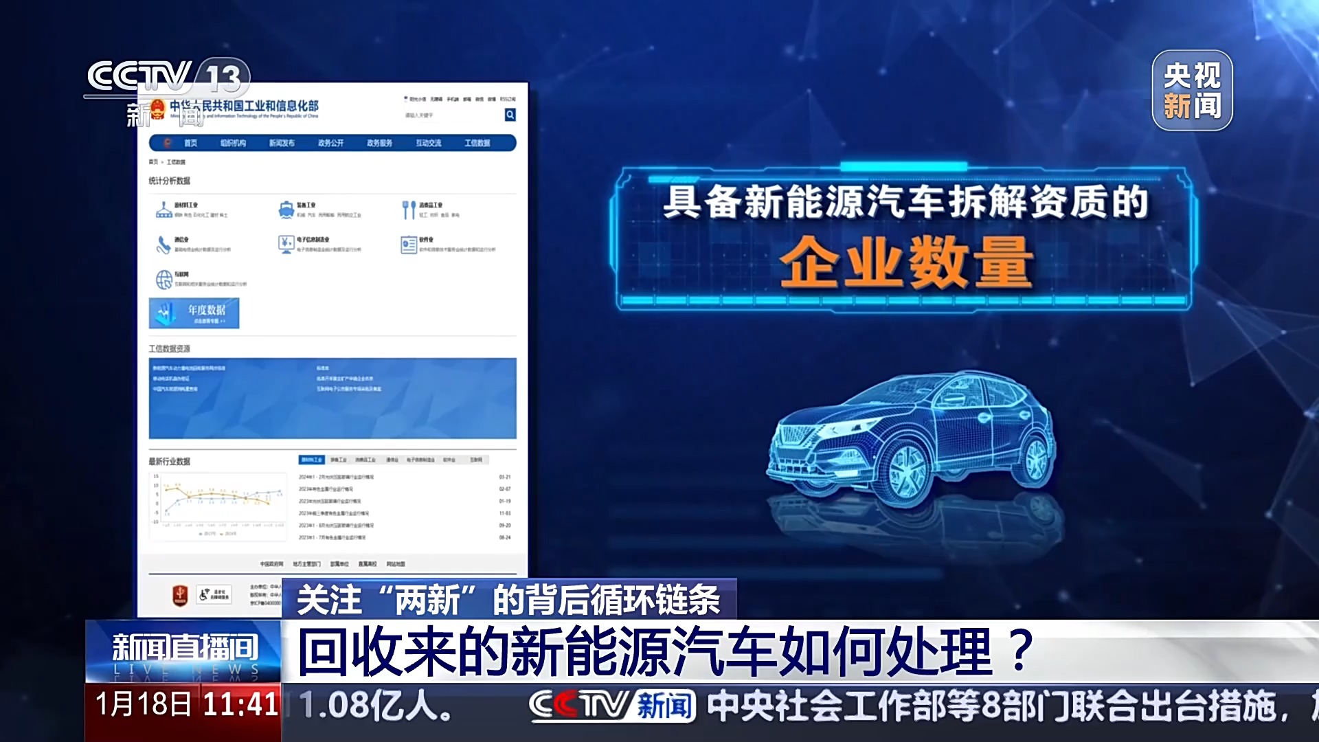 去年,以旧换新带动的销售额中,占比最高的是汽车,数据显示,去年全国汽车以旧换新合计超650万辆,其中包括大量的新能源汽车。这些淘汰下来的车辆如何处理?是不是简单拆成废旧钢铁就可以了?