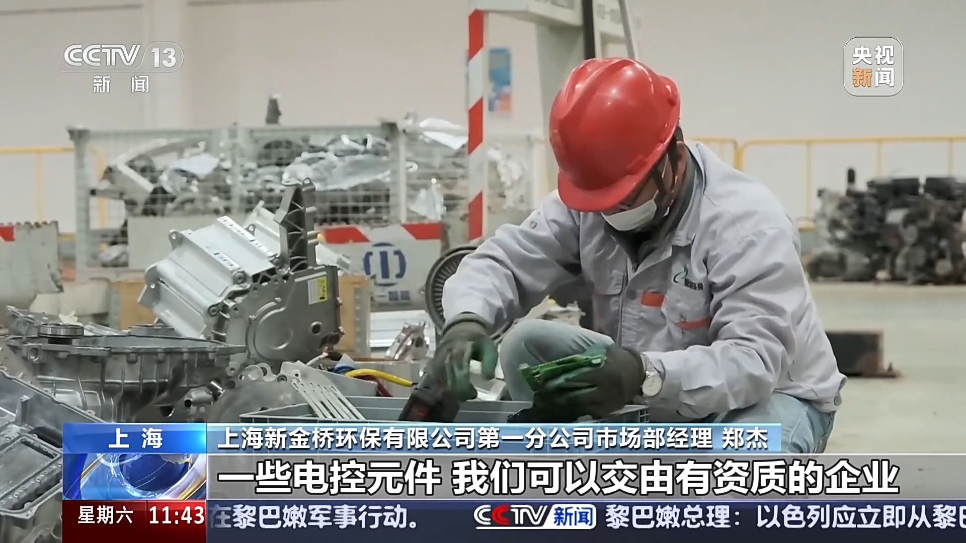 上海新金桥环保有限公司第一分公司市场部经理郑杰:有一定价值的,比如技术较新的、损坏情况较低的,一些电控元件,我们可以交由有资质的企业,进行维修、检测、再翻新,然后应用到一些对成本比较敏感的场景中,进行再利用,也具有一定的利用价值。