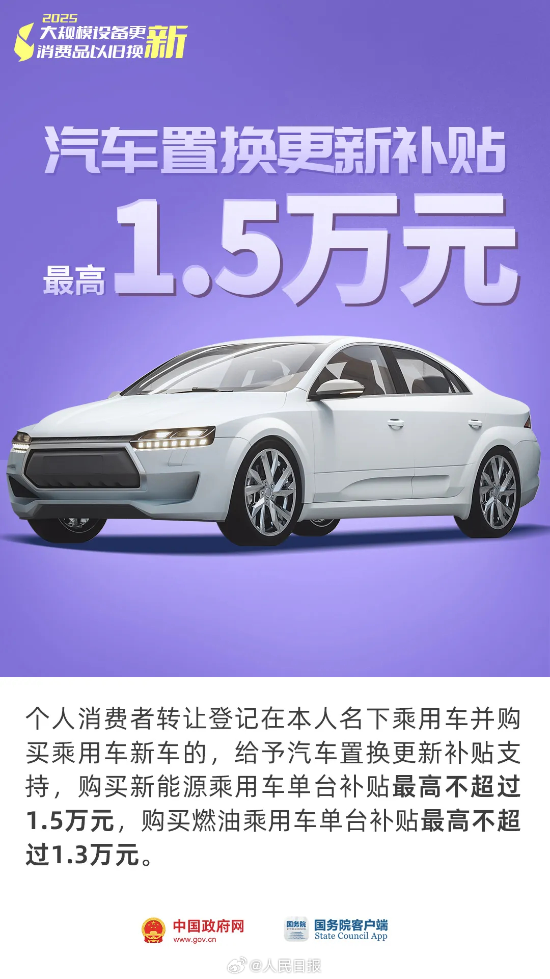日前,2025年加力扩围实施大规模设备更新和消费品以旧换新政策的通知发布,涉及电动自行车、汽车、家电、手机平板、家装等品类,细则详戳收藏,有需要时可省一笔!
